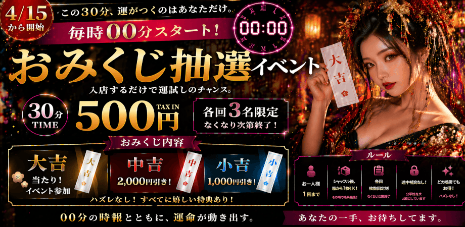 | 給 与 | 時給4000円以上 ※出勤状況により金額は変わる場合もございます。詳しくはお店にお問合せください。 |